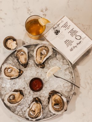 Dishes and fresh oysters from the nearby Gulf of Mexico.